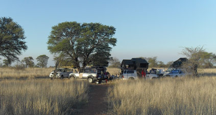 Finally we arrived at Twee Rivieren, the main gate to the Kalagadi, where, after pitching camp, we were catered for by ladies of the Welkom community with a braai, salads and delicious rooster brood.
